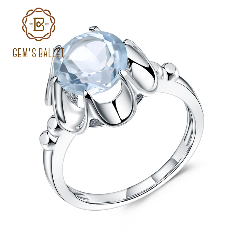 Женское кольцо с натуральным небесно-голубым топазом GEM'S BALLET 2.01Ct, обручальные кольца с драгоценными камнями из стерлингового серебра 925 пробы
