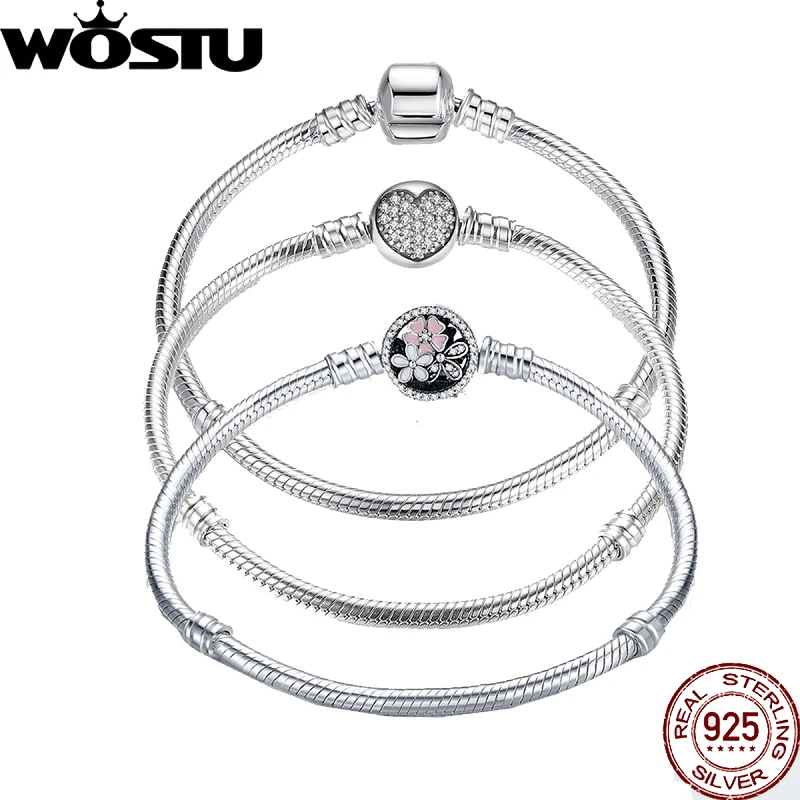 Роскошный браслет-цепочка из 100% стерлингового серебра 925 пробы, оригинальный браслет для женщин, подходит для настоящих очаровательных бусин, ювелирный браслет, женский подарок