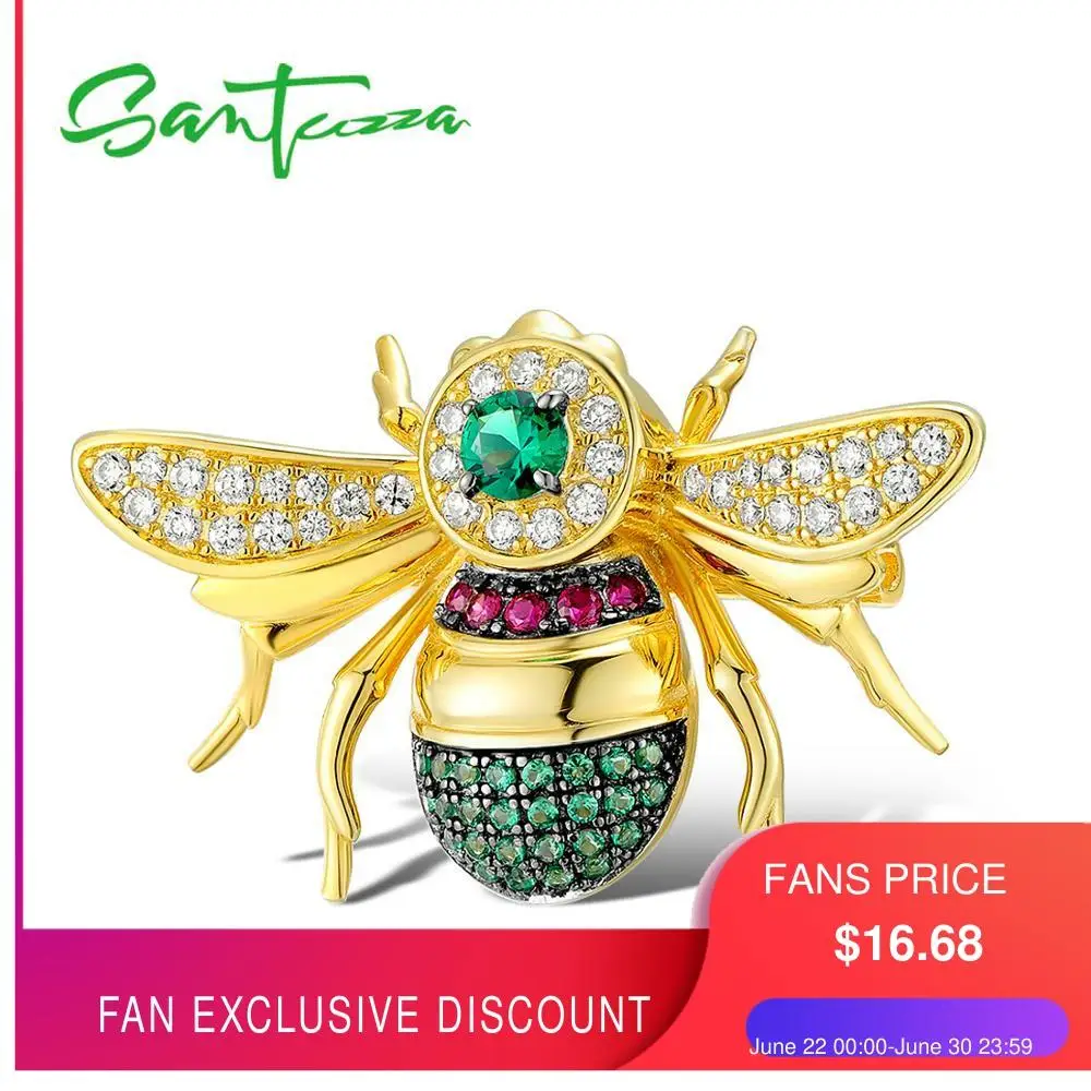 SANTUZZA серебряная брошь для женщин аутентичная 100% Серебро 925 пробы золотой цвет милый пчела насекомое брошь модные ювелирные изделия