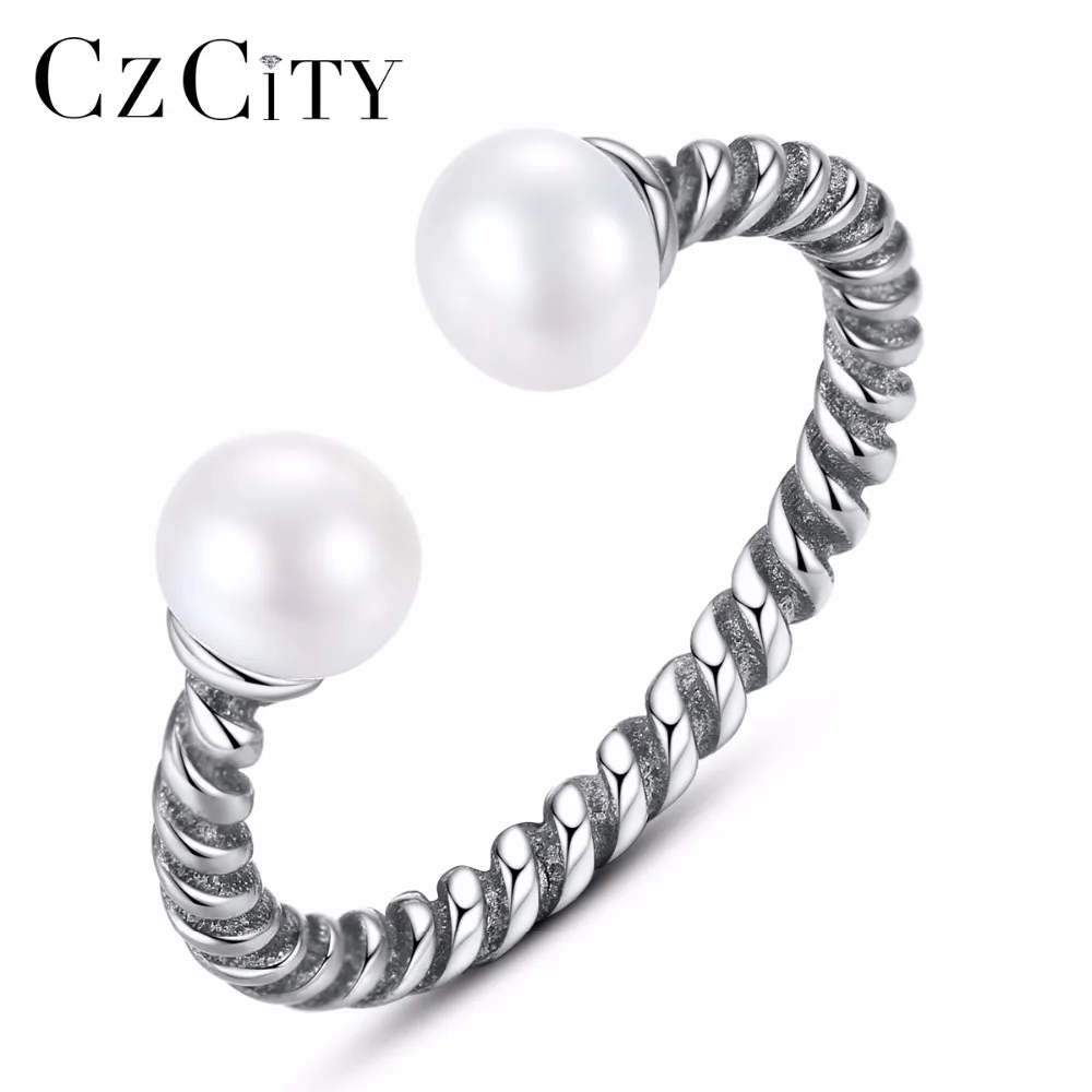 CZCITY 100% Серебро 925 пробы витая веревка любви, серебро жемчуг открытые, кольца на палец для Женское Обручальное украшение