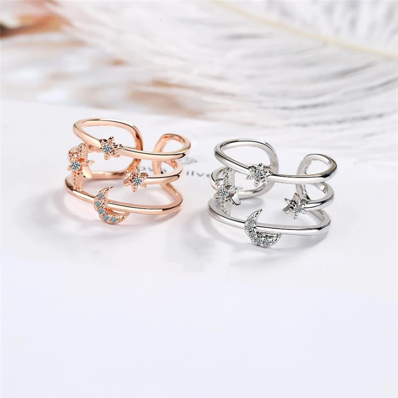 Женские двухслойные кольца SRI395, модные кольца из стерлингового серебра 925 пробы с эффектом памяти и звездной луной