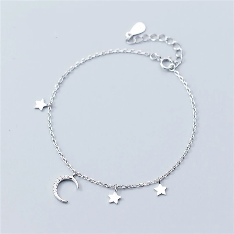Луна Звезда Мини кисточкой милый 925 пробы Серебряный темперамент Женский модный изменяемый Размер браслеты SBR017