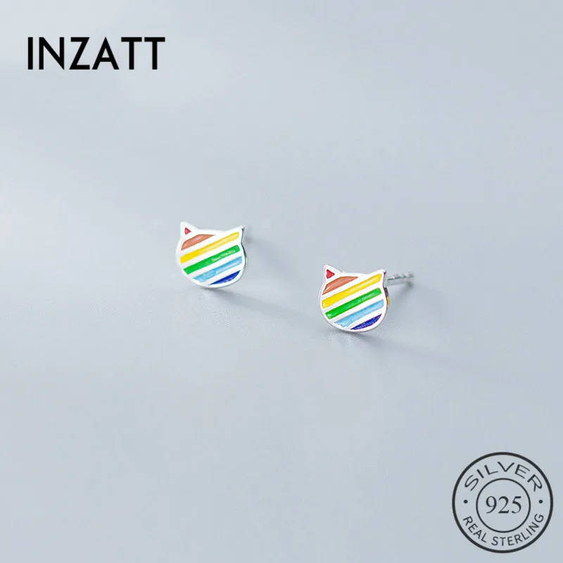 INZATT, Настоящее серебро 925 пробы, эмаль, Радужный кот, серьги-гвоздики для женщин, модные ювелирные изделия, минималистичные аксессуары, хит продаж