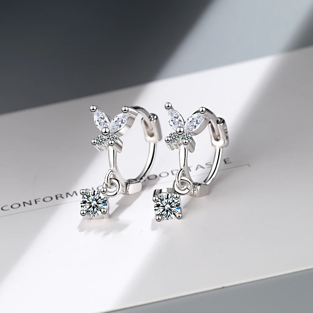 Милые модные серьги из стерлингового серебра 925 пробы для женщин Бант бабочка Фианит, циркон, кристалл, рождественские украшения, подарок