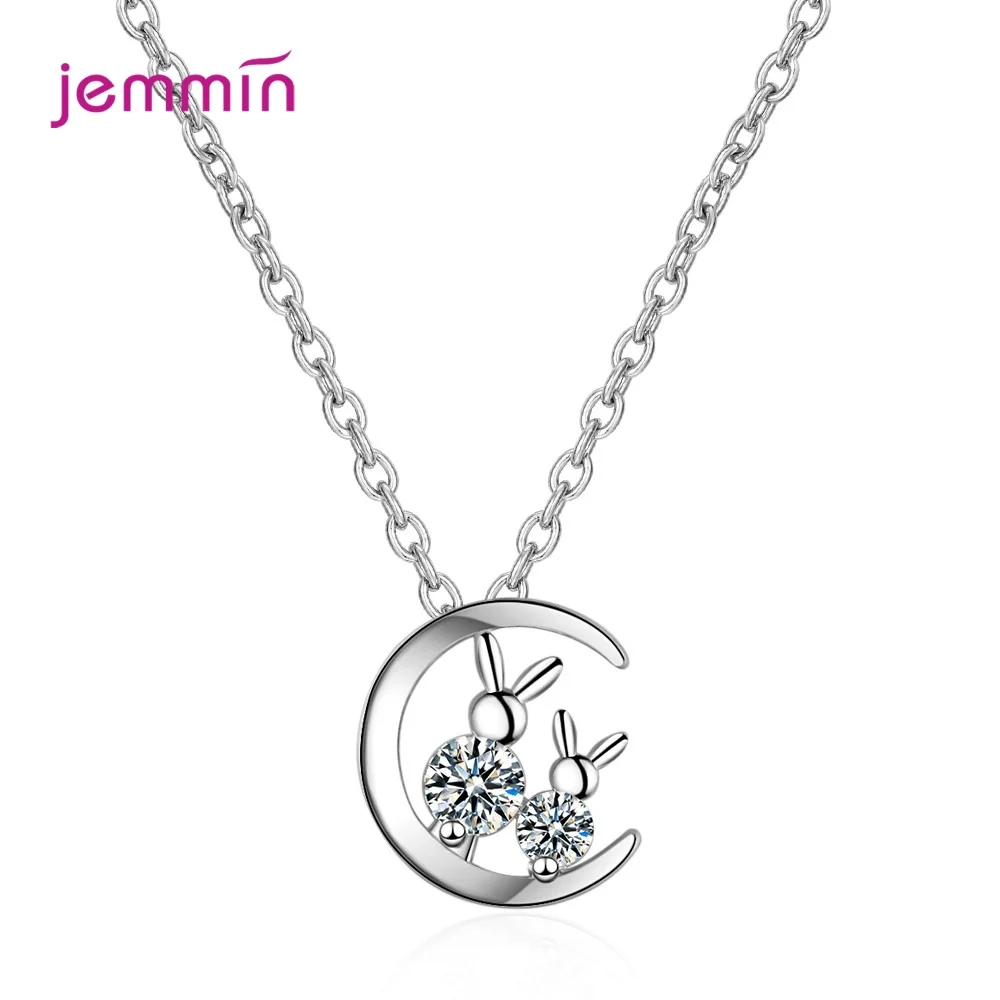 Простое модное женское ожерелье с Луной кошкой из чистого серебра 925 пробы, блестящее 3а циркониевое модное ожерелье с подвеской, Женские Ювелирные изделия