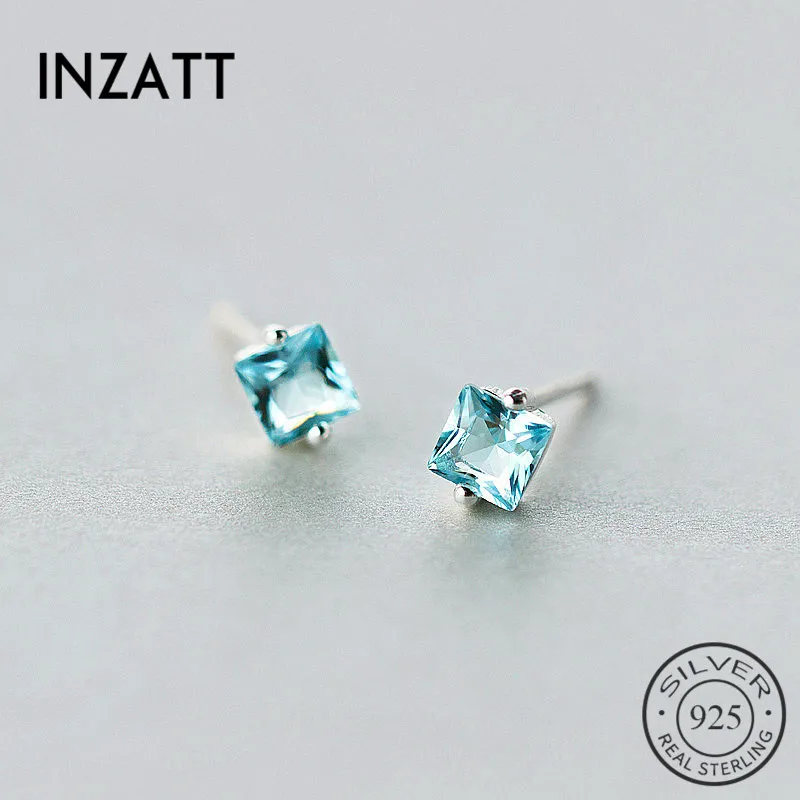 INZATT геометрический площадь голубой циркон серьги очарование 925 пробы серебро ювелирных украшений Для женщин вечерние элегантные 2018 аксесс...