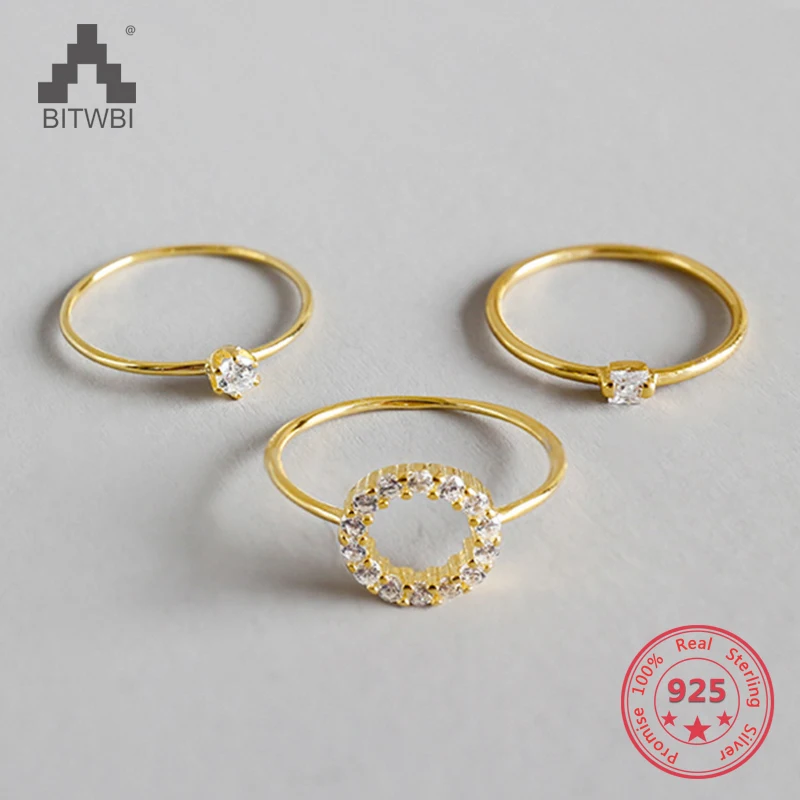 BITWBI подлинное Серебро S925 пробы, модные креативные дизайнерские женские золотые ювелирные кольца с мини кристаллами, подарок