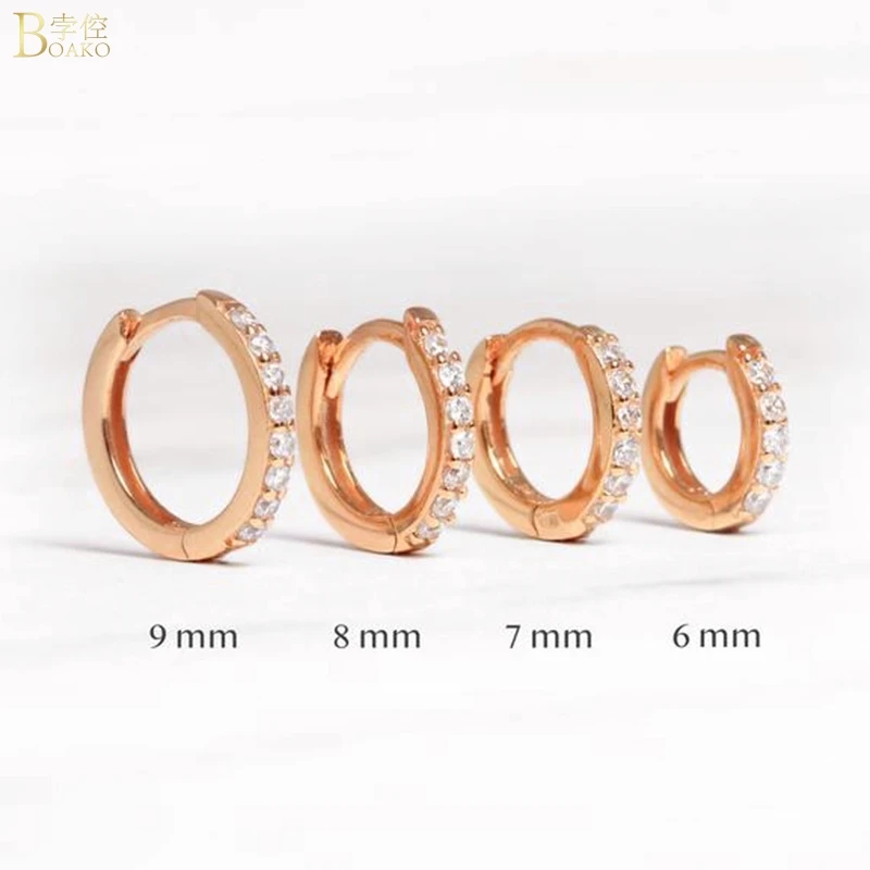 Женские серьги с микро цирконием BOAKO, круглые серьги из стерлингового серебра S925 пробы, 6/7/8/9 мм