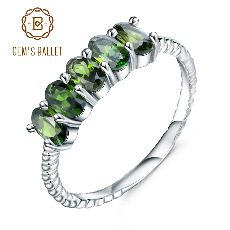 Женское кольцо GEM'S BALLET, обручальное кольцо из стерлингового серебра 925 пробы, натуральный хром, диопсайд, ювелирное изделие