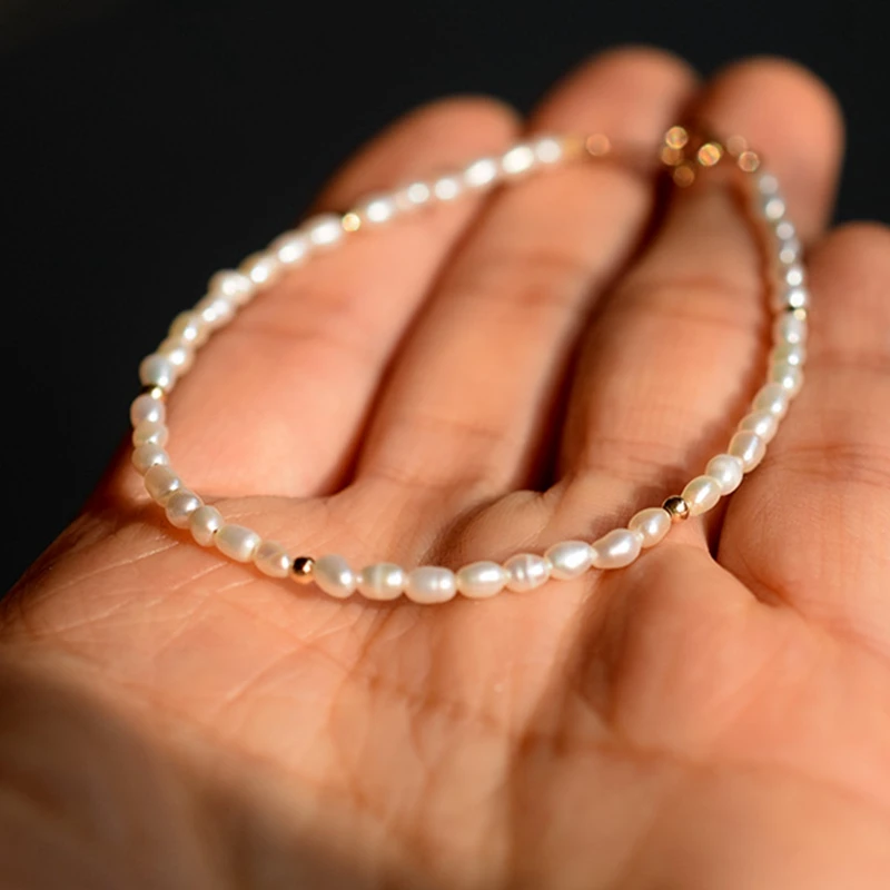 Lii Ji драгоценный камень AA + белый рисовая жемчужина около 2-3 мм 925 пробы серебро золото Цвет Браслет необычные украшения