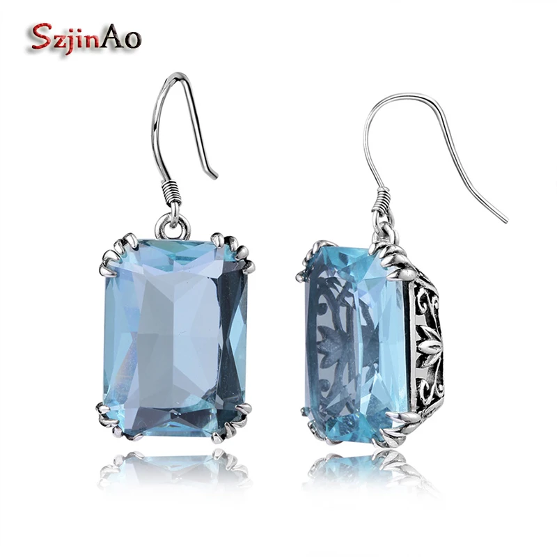 Szjinao, Модные Винтажные Ювелирные изделия, лунный свет, аквамарин, ручная работа, кристалл, серебро 925 пробы, серьги для женщин, подарок на день Святого Валентина
