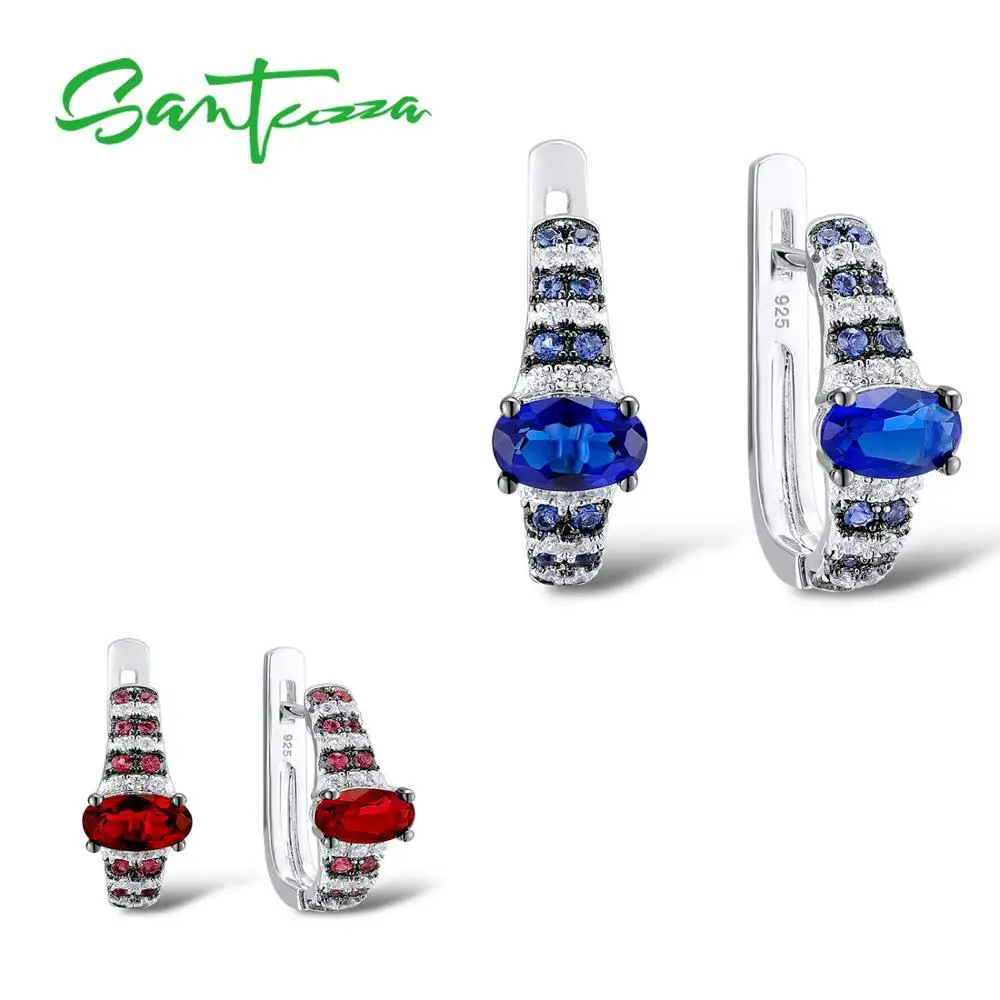 SANTUZZA, серебряные серьги для женщин, натуральная 925 пробы, серебряные, элегантные, Овальные, красные, синие, трендовые серьги-гвоздики, сережк...