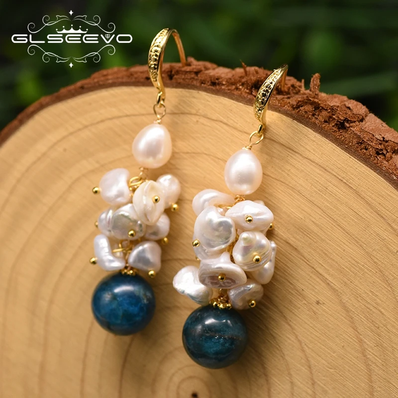GLSEEVO оригинальный дизайн натуральный пресноводный жемчуг серьги-подвески ручной работы Кианит Висячие серьги для женщин хорошее ювелирное изделие GE0903