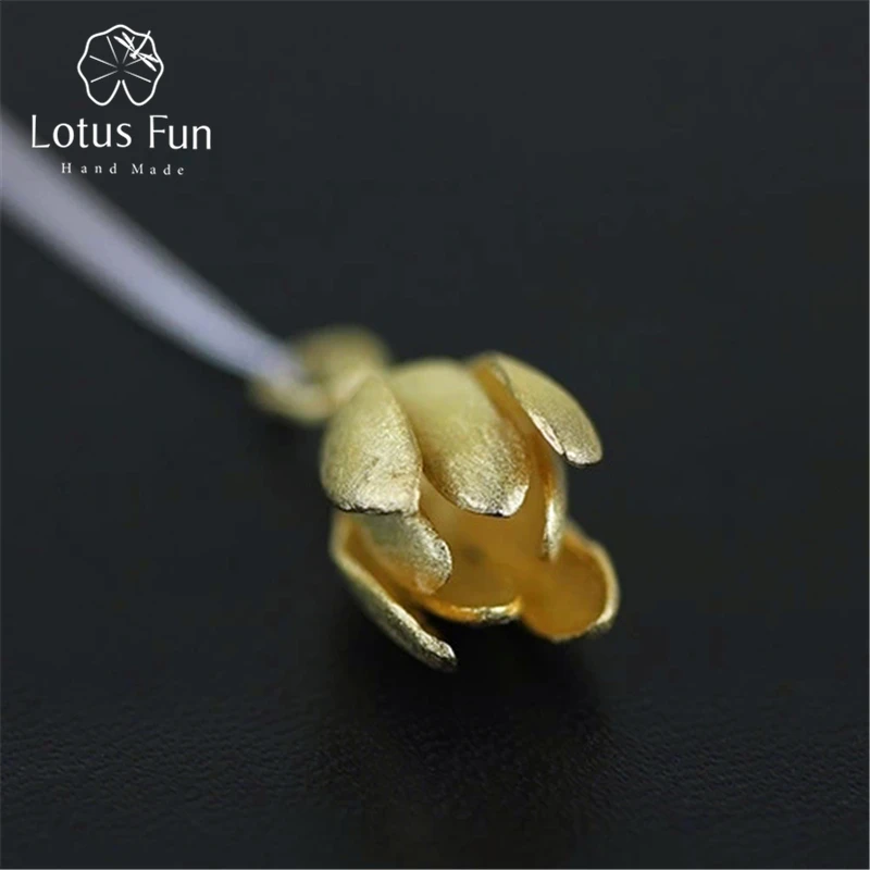 изящный цветок лотоса подвески для колье ручная работа позолоченные бижутерия женский аксесуары реального чистого стерлингового серебра ...