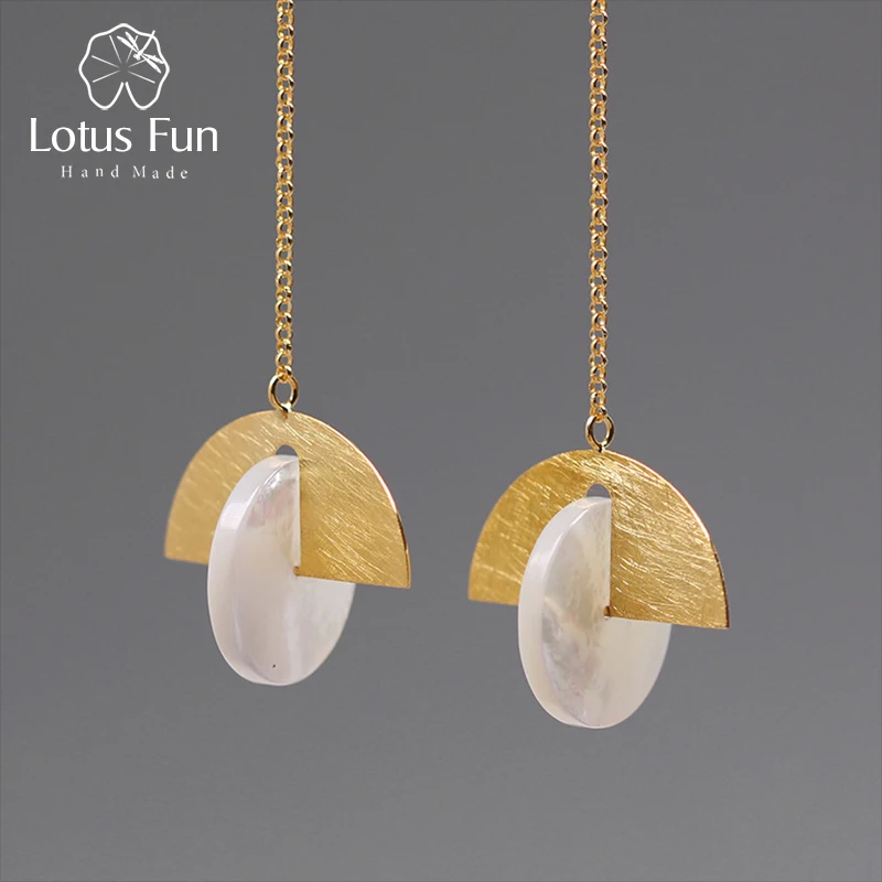 Lotus Fun реальные 925 пробы серебро натуральный камень Креативный дизайнер ювелирные украшения сектора Rotable длинные висячие серьги для женщин