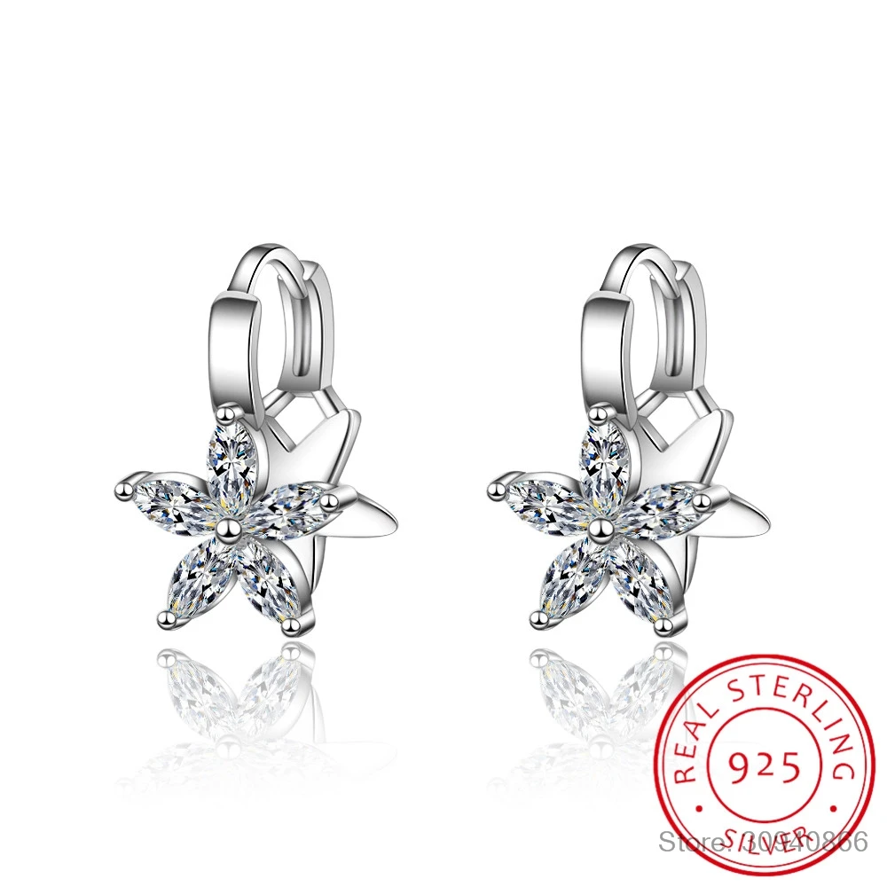 Цветок серьги Винтаж 925 пробы серебро двойная звезда одежда для свадьбы, дня рождения уха серьги День Святого Валентина Fine Jewelry