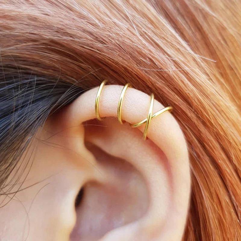 925 серебряные серьги-каффы с золотым наполнителем, клипсы для ушей, 2 шт., ювелирные изделия ручной работы, серьги для пирсинга для женщин