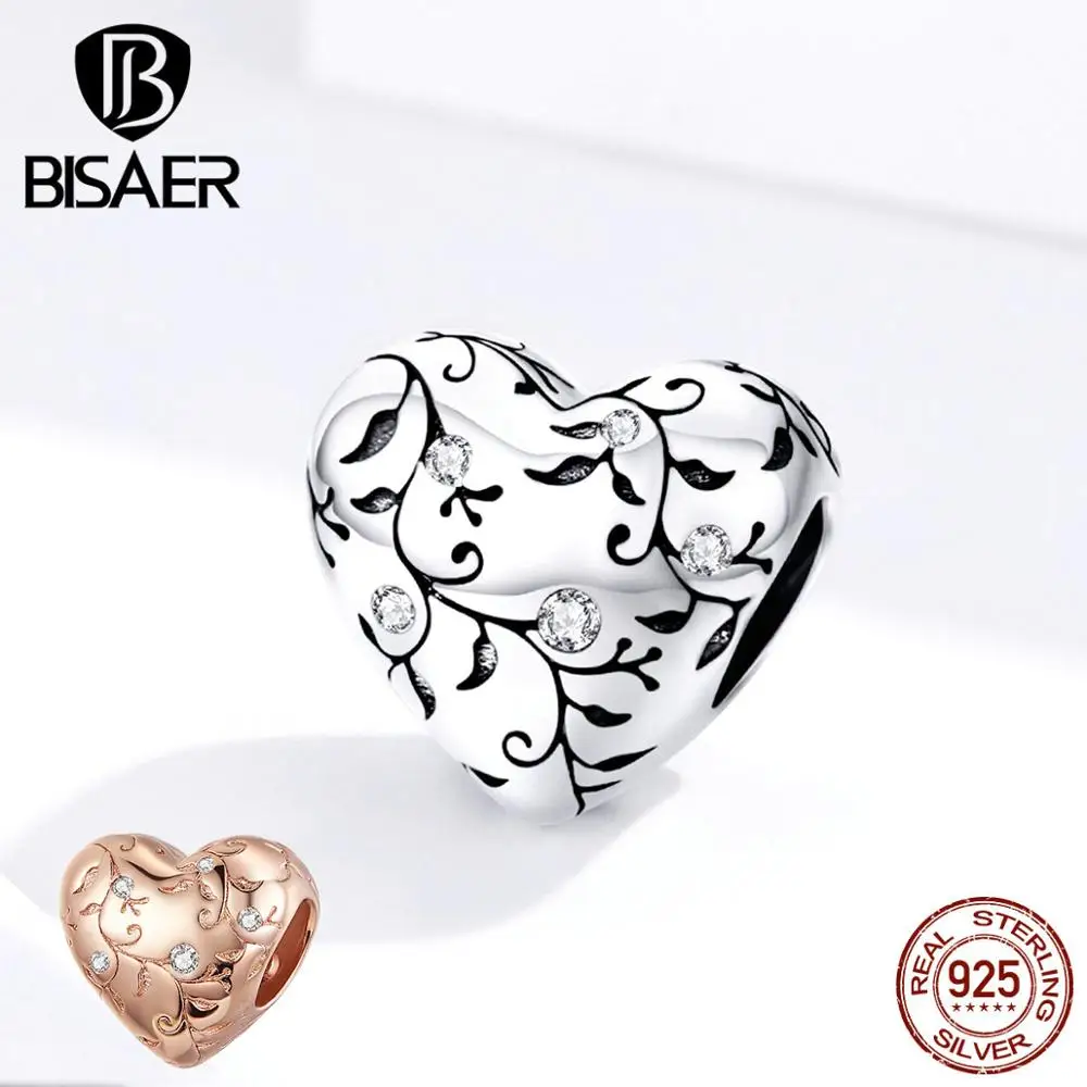 Горячая Распродажа серебряные бусины 925 пробы Любовь аксессуары в форме сердца дерево листья подходят для женщин браслеты Сделай Сам аксес...
