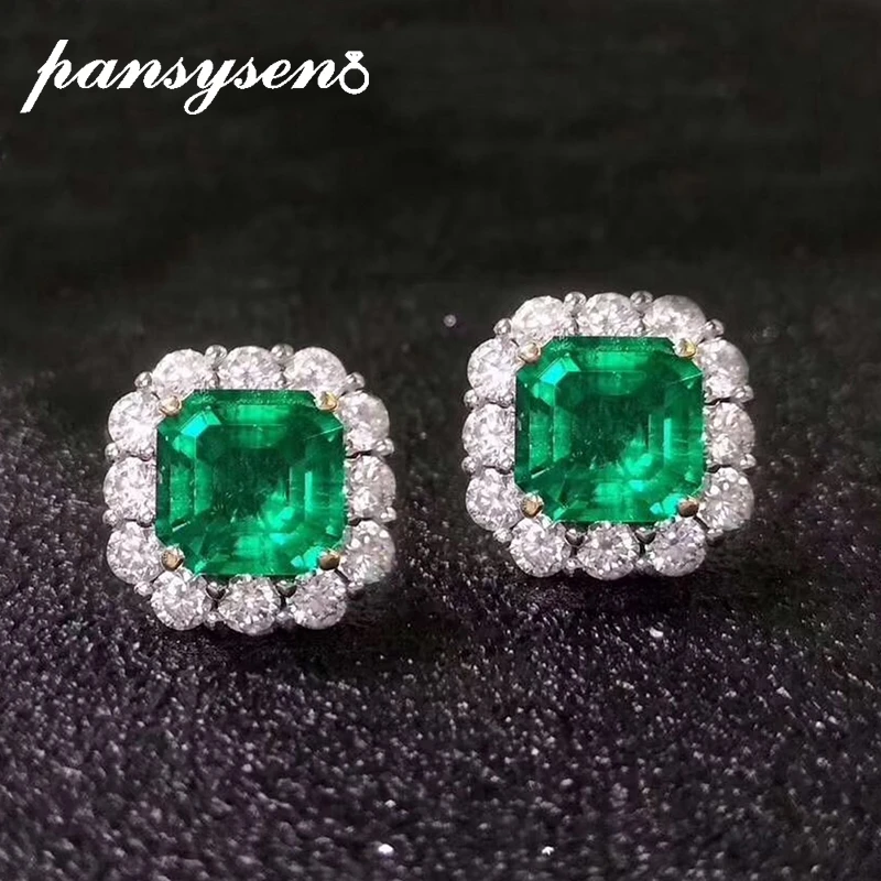 PANSYSEN винтажные натуральные изумрудные алмазные серьги для женщин Роскошные ювелирные изделия из стерлингового серебра 925 пробы Серьги Под...