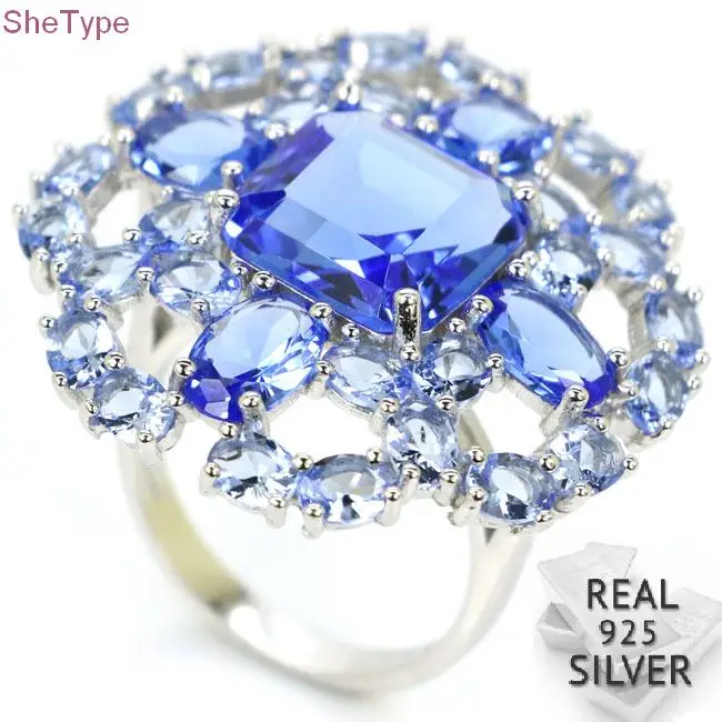 10,0 # SheType 7,8 г Топ фиолетовый танзанит женские свадебные серебро 925 пробы кольцо 30x30 мм