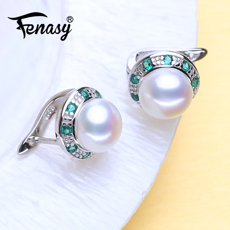 Женские серьги-пусеты FENASY, серьги из натурального пресноводного жемчуга из серебра 925 пробы с зелеными кристаллами в стиле бохо, украшения для свадьбы