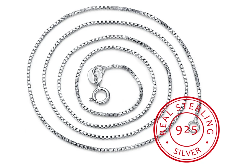 1 мм тонкая Настоящее серебро 925 проба легкая коробка цепочка ожерелье для женщин, девушек, детей 45 см ювелирные изделия Коле ожерелье