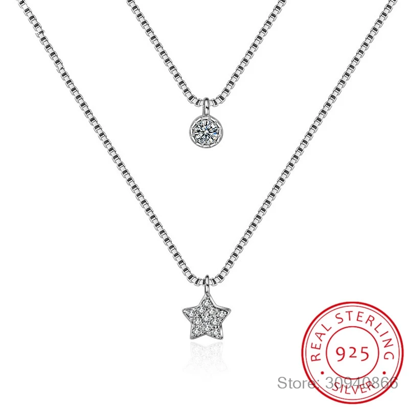 Новое поступление 925 пробы серебро Двуслойное ожерелье с звезда кулон ключицы Цепочки и ожерелья Цепь для Для женщин и девушки ювелирные из...