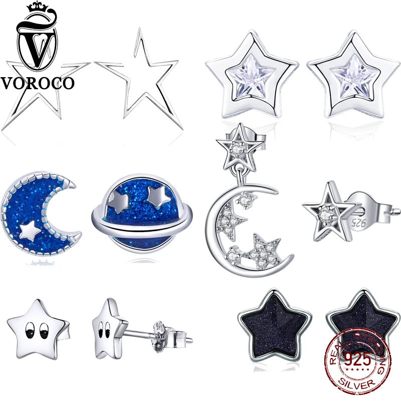 Voroco старинный ночное небо звезды Стад Серьги 925 пробы серебро авантюрин маленькие серьги для Для женщин свадебные Стиль Роскошные ювелирные изделия