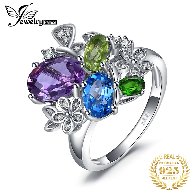 JewelryPalace цветок 2,6 натуральная аметист голубой топаз Перидот хром Подвеска из диопсида 925 пробы серебро для Новая женская обувь; Лидер продаж