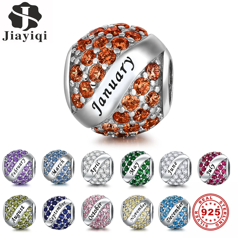 Женские шармы на день рождения Jiayiqi, круглые бусины из стерлингового серебра 925 пробы с фианитами, серебро 925 пробы, оригинальные ювелирные изделия в подарок