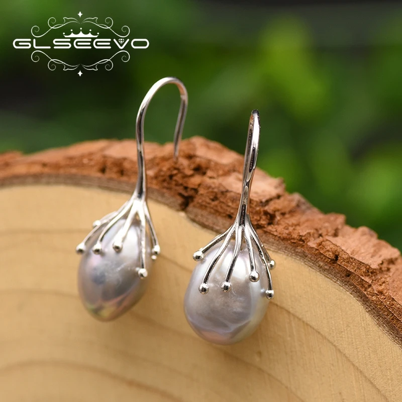 GLSEEVO натуральное пресноводное серое, жемчужные серьги в стиле барокко для женщин 925 Висячие серьги из серебра 925 пробы, роскошные ювелирные изделия GE0335B