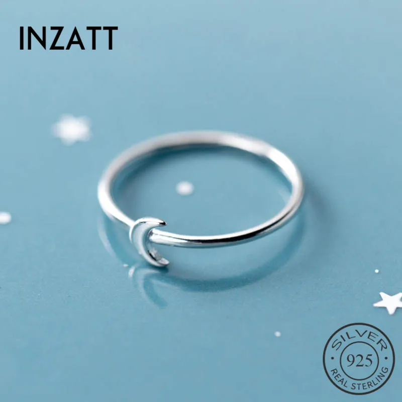 INZATT Настоящее серебро 925% пробы минималистичное кольцо с Луной для женщин на день рождения классические ювелирные украшения геометрические милые аксессуары