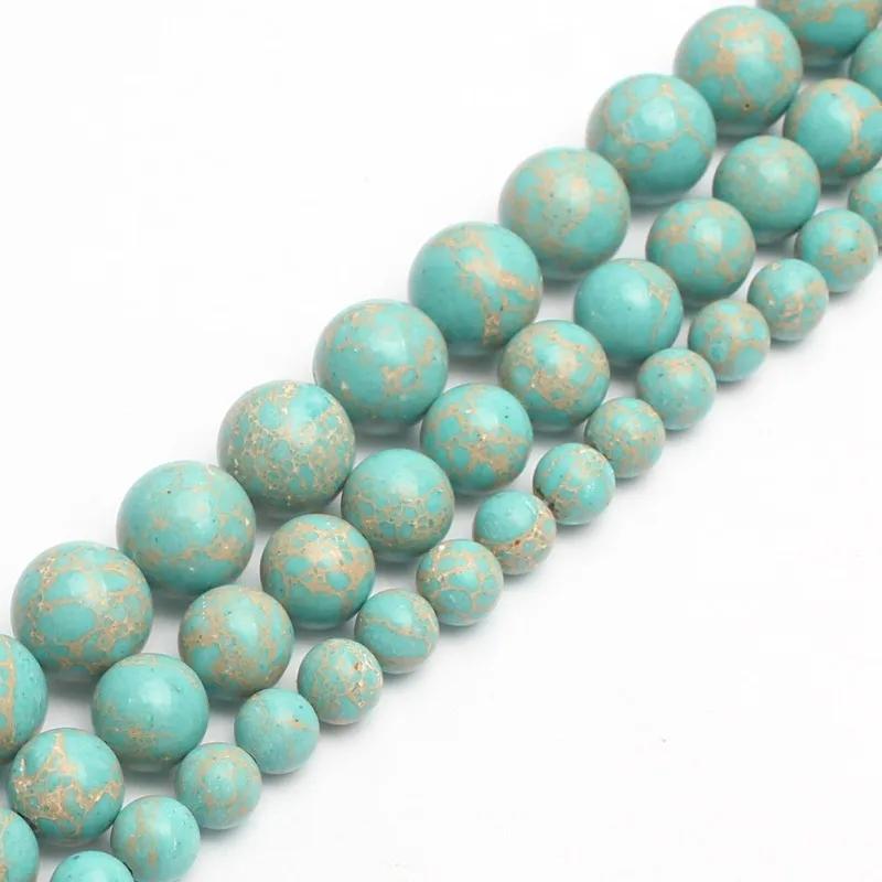 Бирюзовый цвет натуральная императорская яшма морской камень из осадочной породы бусины для изготовления ювелирных изделий DIY Шарм браслет ожерелье 6/8/10 мм 15 дюймов