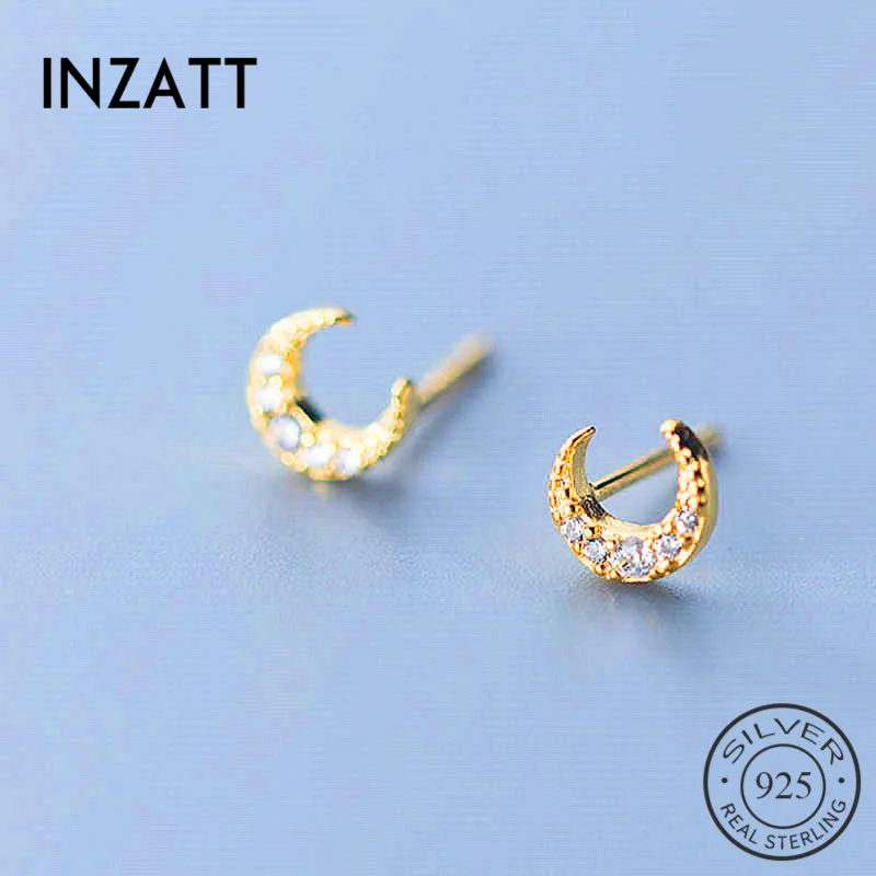 INZATT Настоящее серебро 925 пробы милые циркониевые серьги-гвоздики для моды Moon женские вечерние минималистичные ювелирные изделия Аксессуары подарок