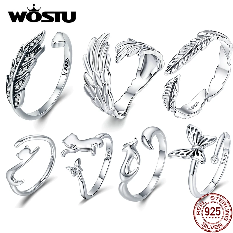 WOSTU, 100% Настоящее серебро 925 пробы, открытые кольца, горячая Распродажа, прозрачные Регулируемые кольца CZ, винтажные, совместимые, модные ювелирные изделия, подарок
