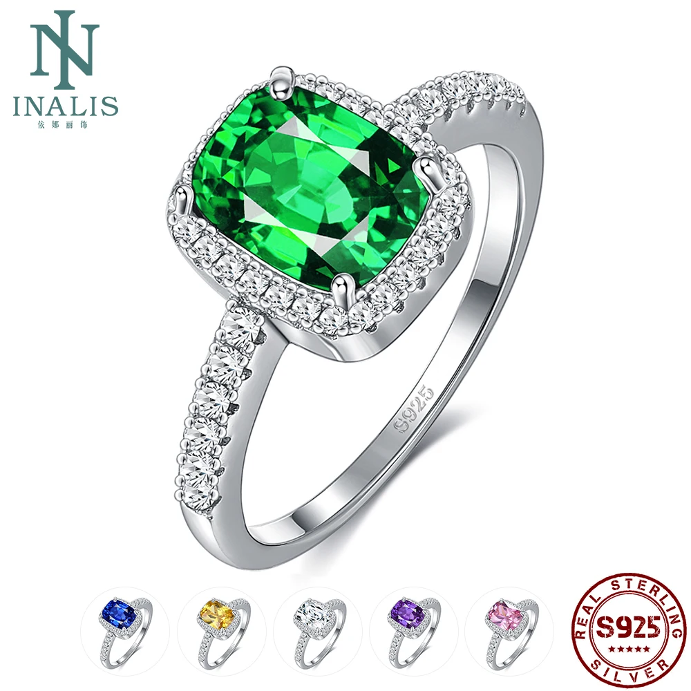 INALIS, 6 цветов, Настоящее серебро 925 пробы, ювелирное изделие, изумруд, драгоценный камень, кольца для женщин, новая мода, обручальное кольцо с 5...