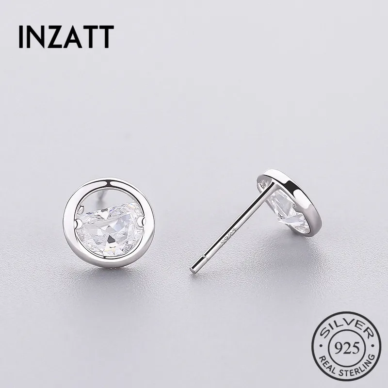 INZATT ПР геометрический Круглый Циркон серьги стержня Настоящее 925 пробы серебро для Для женщин вечерние Fine Jewelry модные очаровательные аксесс...
