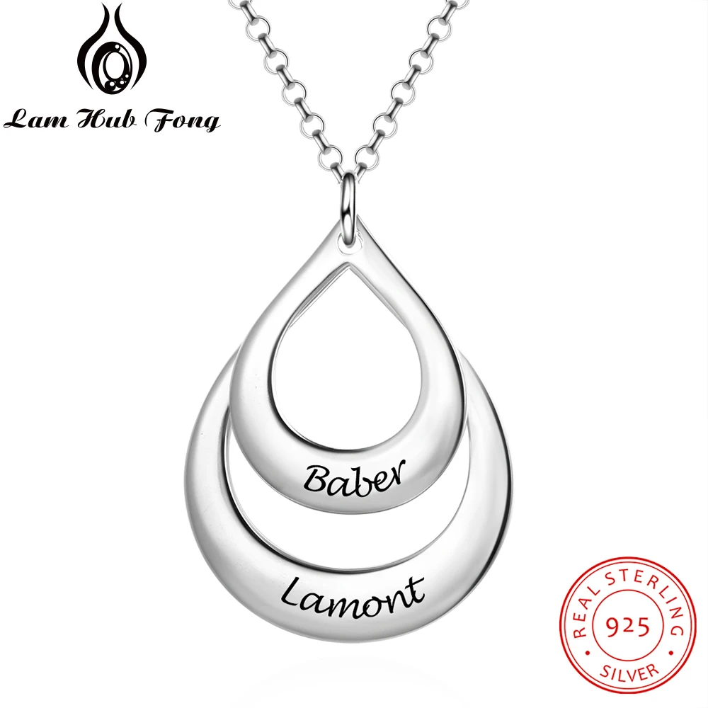 Персонализированное 925 пробы Серебряное ожерелье для женщин на заказ 2 имени ожерелье Капля воды ожерелье ювелирные украшения (Lam Hub Fong)