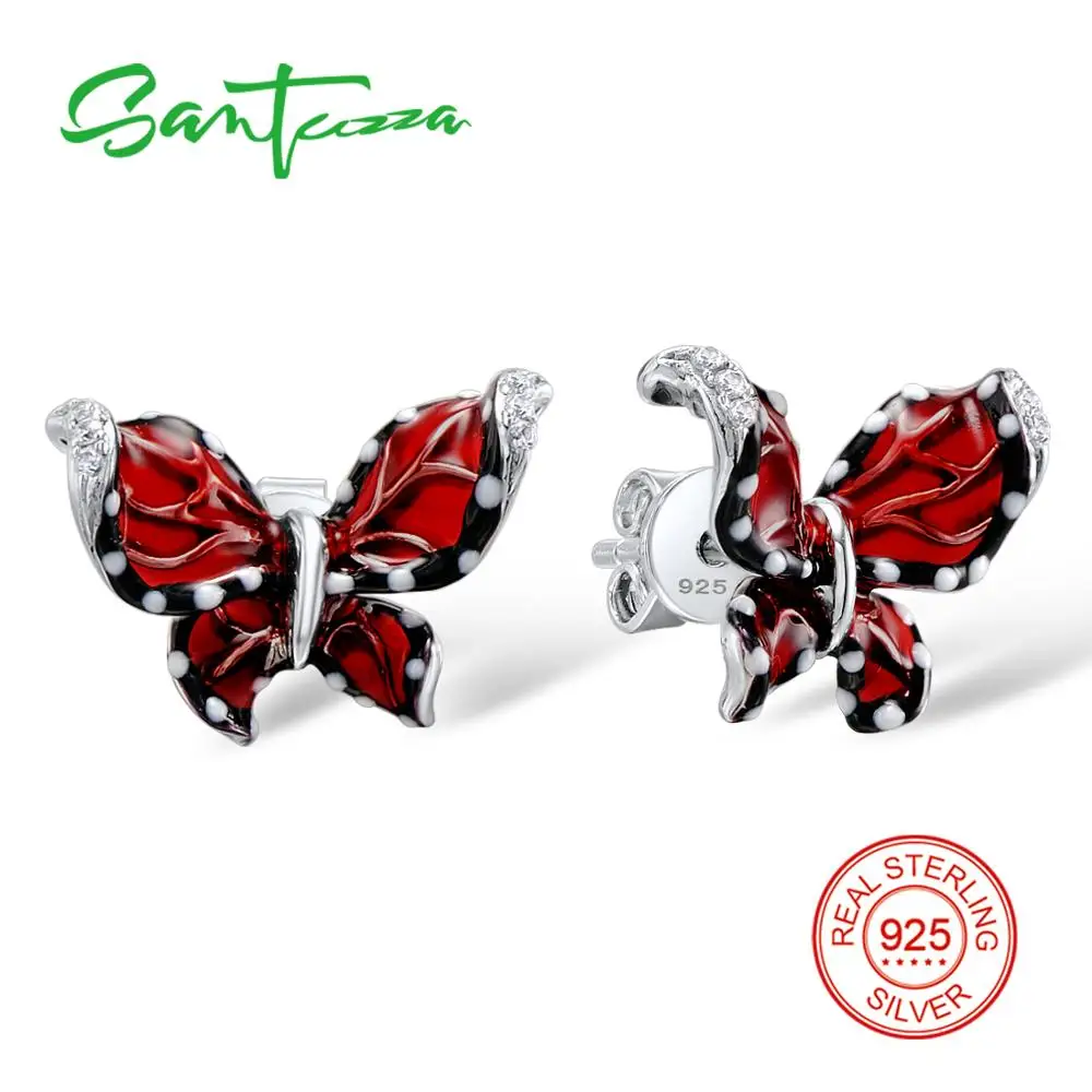 SANTUZZA серебряные серьги в виде бабочек для женщин из стерлингового серебра 925 пробы Серьги-гвоздики CZ brincos Ювелирные изделия эмаль ручной работы