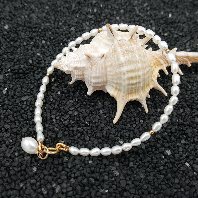 Lii Ji драгоценный камень AA + белый рисовая жемчужина около 2-3 мм 925 пробы серебро золото Цвет Браслет