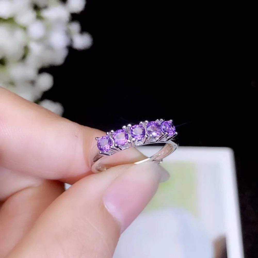 Женское кольцо с натуральным аметистом, обручальные кольца из стерлингового серебра 925 пробы с фиолетовым камнем, ювелирные украшения