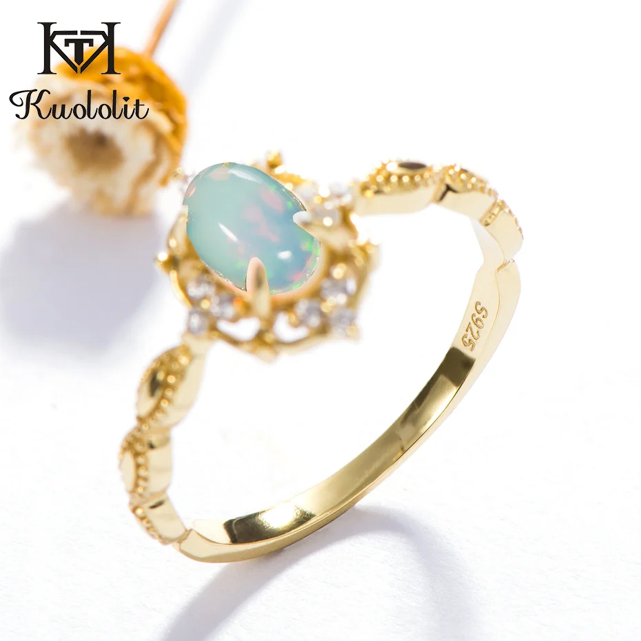 Kuololit натуральный опал драгоценный камень кольца для женщин 925 пробы серебро огненный камень желтый цвет Свадебное обручальное кольцо ювели...