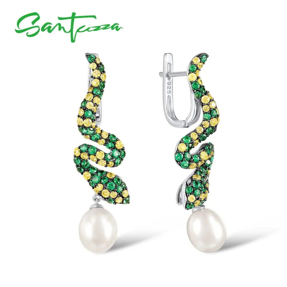 Серьги из серебра santuza для женщин, чистое серебро 925 пробы, круглые зеленые серьги-капли из шпинели, ювелирные изделия из жемчуга