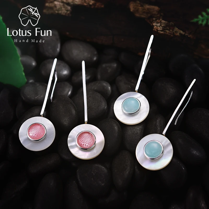 Lotus Fun Реальные Стерлингового Серебра 925 Природный Камень Ручной Тонкой Ювелирной Роскоши и Простые Серьги для Женщин Brincos