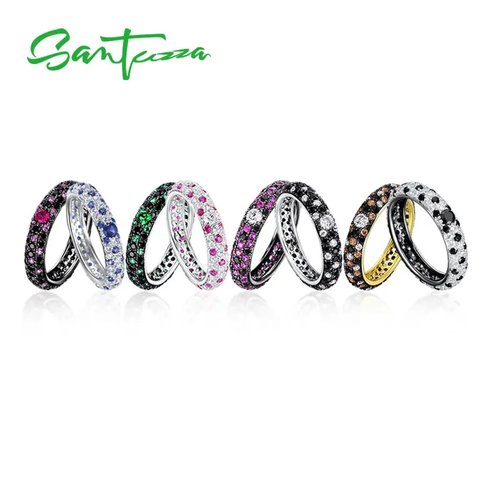 Женское серебряное кольцо SANTUZZA, разноцветное кольцо из стерлингового серебра 925 пробы с кубическим цирконием, Трендовое модное ювелирное изделие