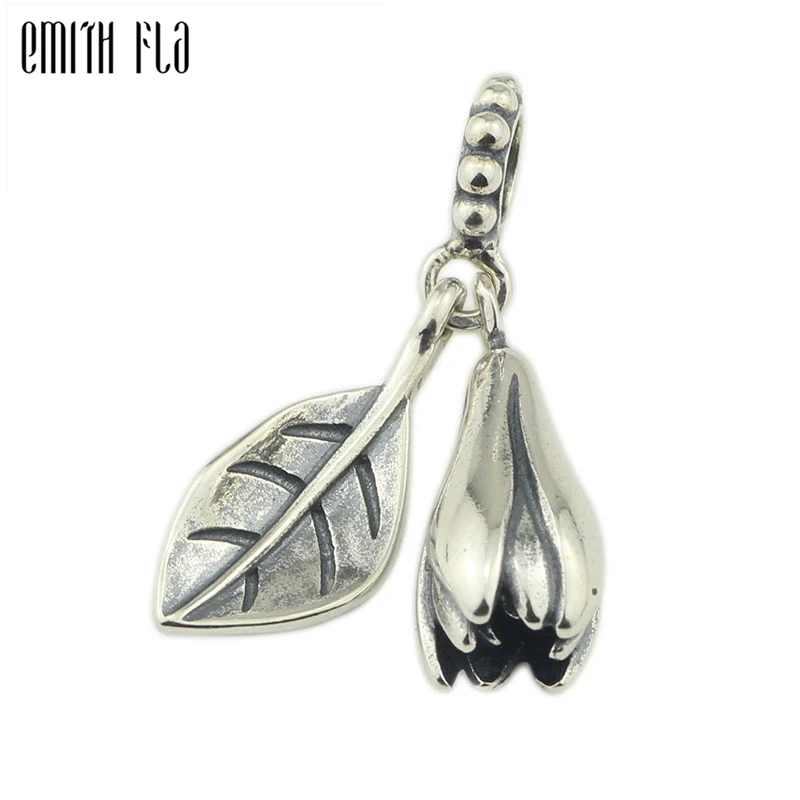 Подвески Магнолия из серебра 925 пробы, оригинальные шарики подходят для браслета, бусинки с большими отверстиями для ювелирных изделий