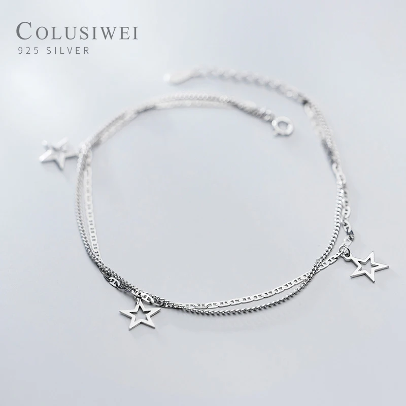 Женский двухслойный браслет COLUSIWEI, серебряная цепочка в Корейском стиле с цепочкой в виде звеньев, 925 пробы, 2020