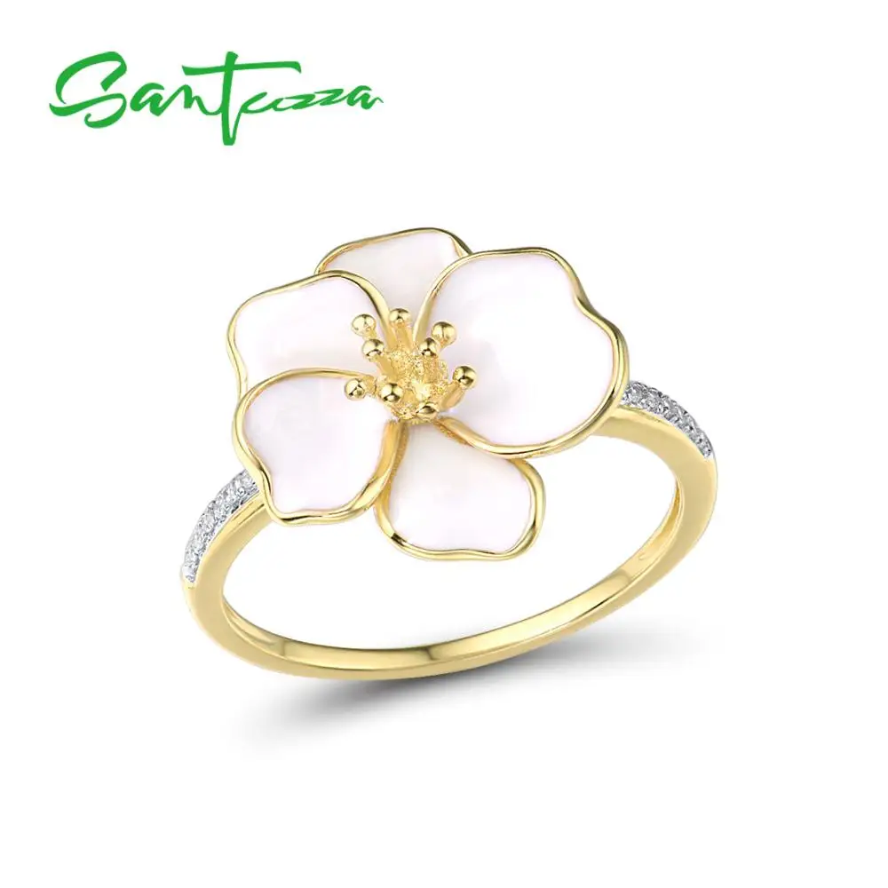 SANTUZZA серебряные кольца для женщин из натуральной 925 пробы Серебряный нежный цветок белой орхидеи модные ювелирные изделия ручной работы с э...