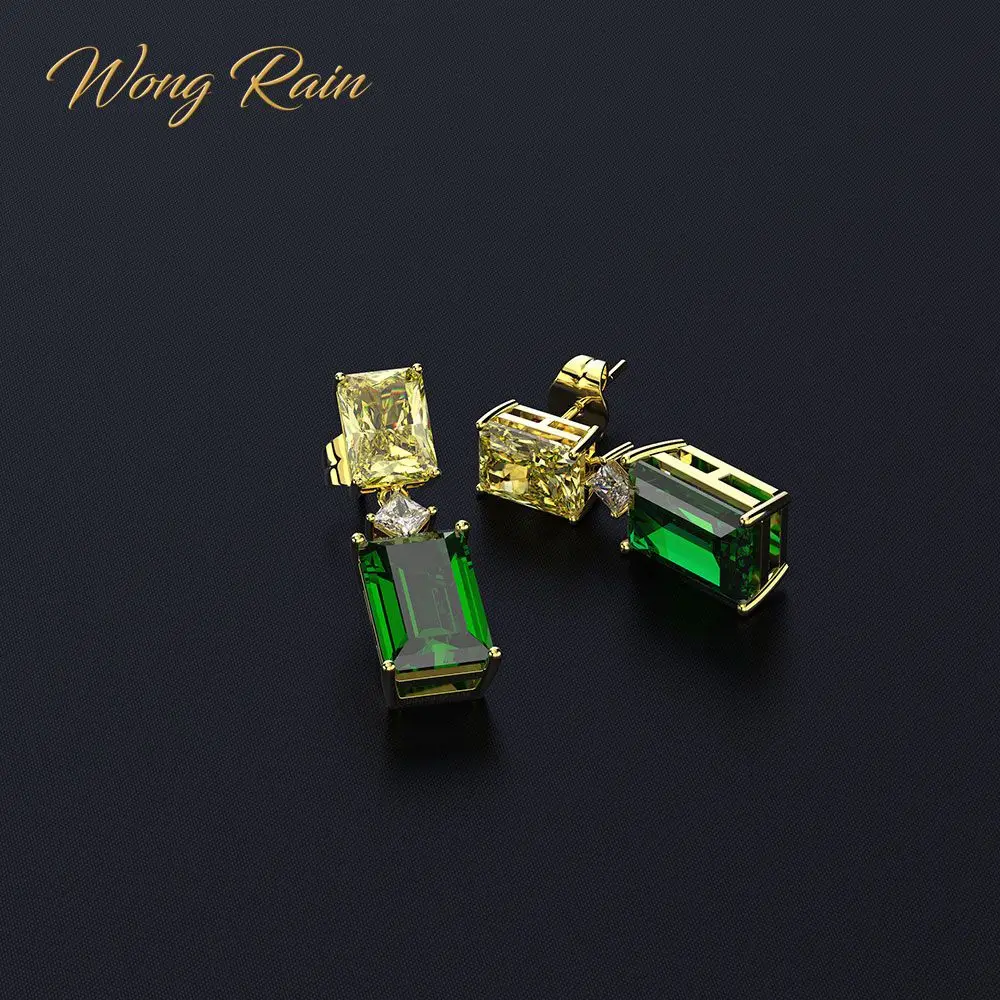 Wong Rain винтажные 100% 925 Настоящее серебро цитрин, изумруд, драгоценный камень, бриллианты, серьги на годовщину, хорошее украшение, подарок, оптовая продажа