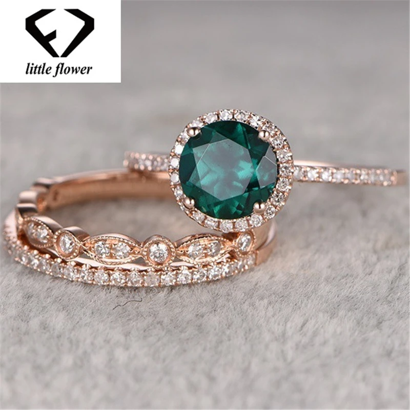 14k розовое золото набор из бирюзы три-Кольцо из элементов бриллиант для помолвки Изумрудное Ювелирное Украшение с бриллиантом Anillos для женщин кольцо с драгоценным камнем золото 8 марта серебряные украшения gümüş
